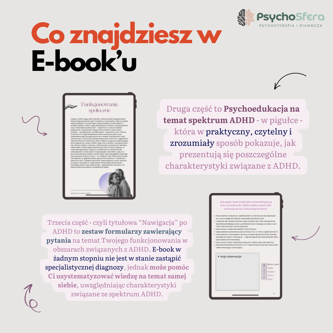 Jeśli jesteś przed diagnozą, albo zastanawiasz się, czy diagnoza w ogóle jest dla Ciebie to “Nawigacja” pomoże Ci się w “tym” odnaleźć, zastanowić się nad swoimi doświadczeniami z przeszłości i teraźniejszości – zastanowić się, czy temat ADHD dotyczy Ciebie.